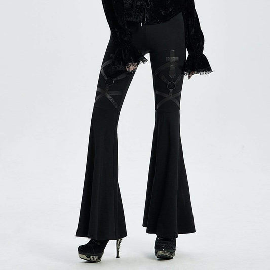 Gothic Faux Leather Detail Bell Bottoms