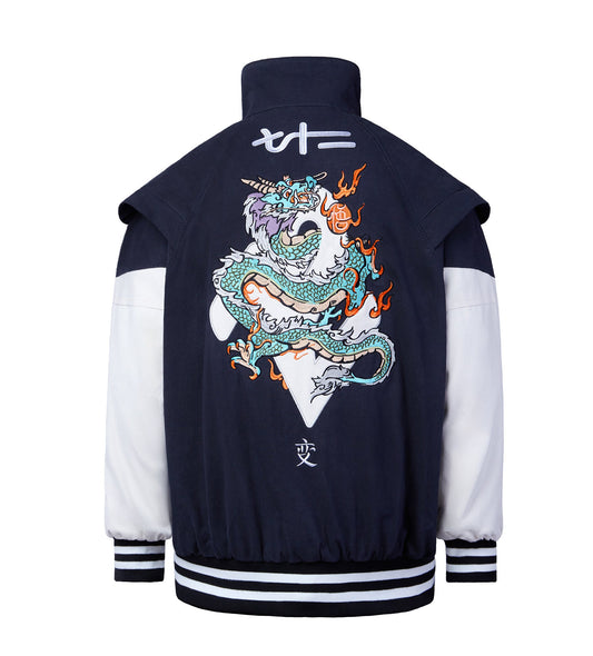 Blue Resting Dragon Embroidery Varsity Jacket