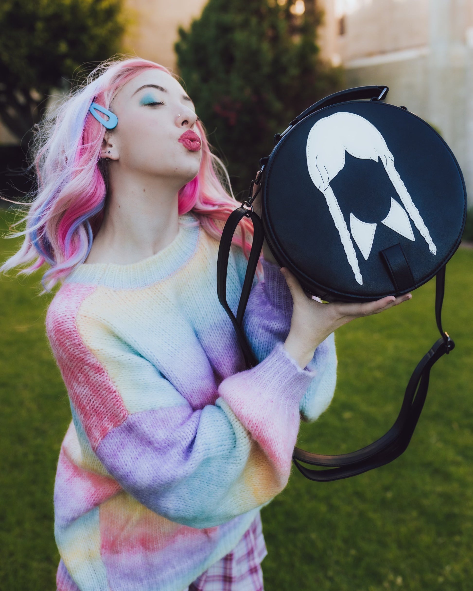 On the back, we have modified the classic goth girl silhouette to represent our modernized anti-hero. Inside, you will find a black-and-white lining displaying our favorite monstrous quote.