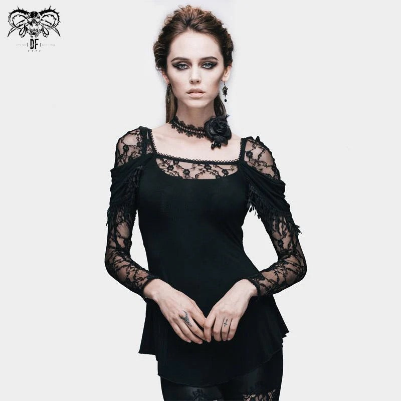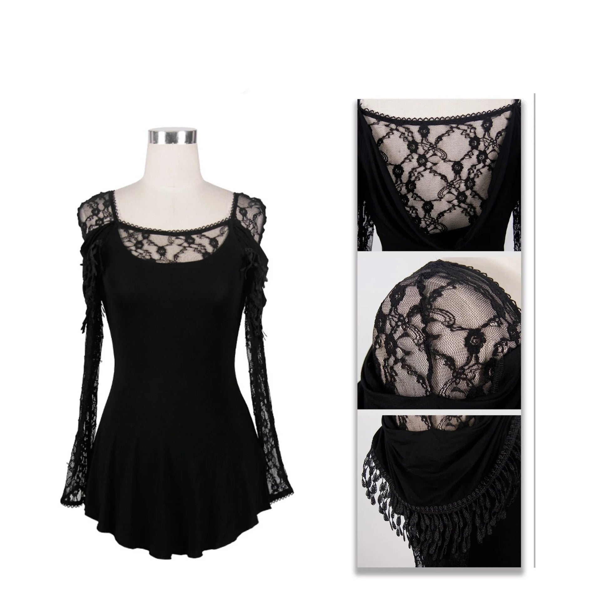 All of us know that a cowl neckline never went out of style and never will. It’s feminine, cheeky and sexy at the same time!This gothic top is just gorgeous with its floral lace panelling and can be matched with a variety of accessories.