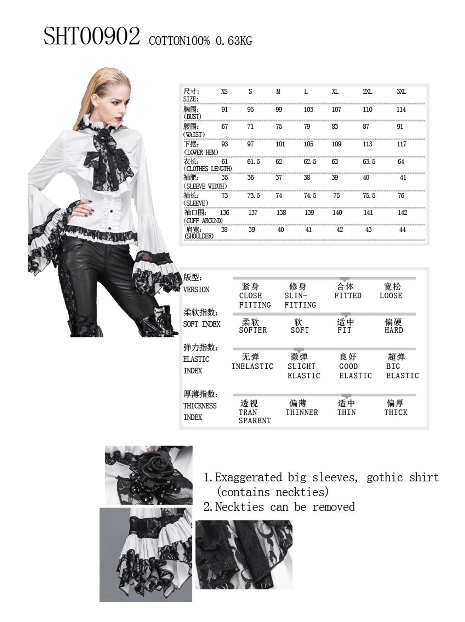 A gothic top with ruffles and horn sleeves.The ruffles and the bow-tie on front are layered with mesh lace and the hemline is bordered with it too.The drawstring on back can be adjusted as preferred. Product Specifications:Style: GothicFabric: 100% Cotton