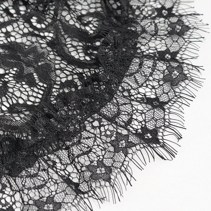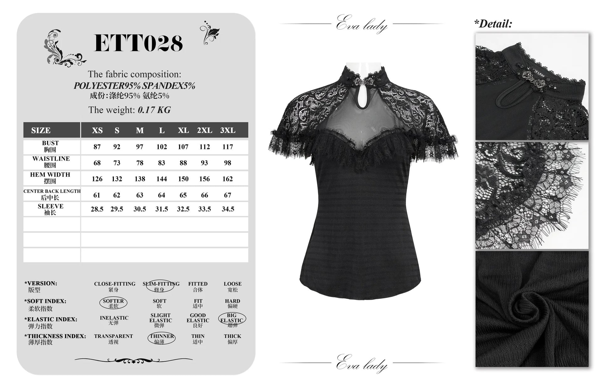A cheongsam gothic top. It features a cheongsam (a chinese traditional dress) neckline, a peplum hemline and short sleeves. The sleeves and the neckline are bordered with lace. There is a hook on the neckline. Product specifications: Style: GothicMaterial: Polyester 95%, Spandex 5%