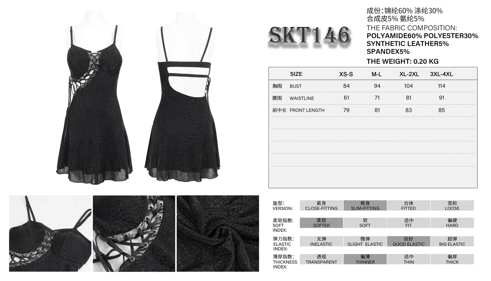 A Gothic Leopard Print Dress.This printed dress features an eyelet and faux leather panel with a waxed string interlaced in it on the centre front.The fabric is elastic and the waxed string is adjustable. Product specifications:Style: PunkMaterial: POLYAMIDE 60%, POLYESTER 30%, SYNTHETIC LEATHER 5%, SPANDEX 5%