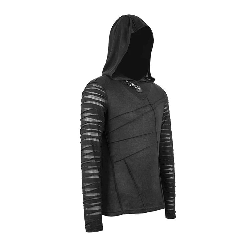 This gothic-looking men’s striped hooded top has jacquard sleeves with bandage effects making it a perfect hood for every day. For adding more ease, its collar is adjustable and decorated with metal buttons giving it a perfect medieval look. This stunning Victorian hooded top is perfect for travel and Leisure