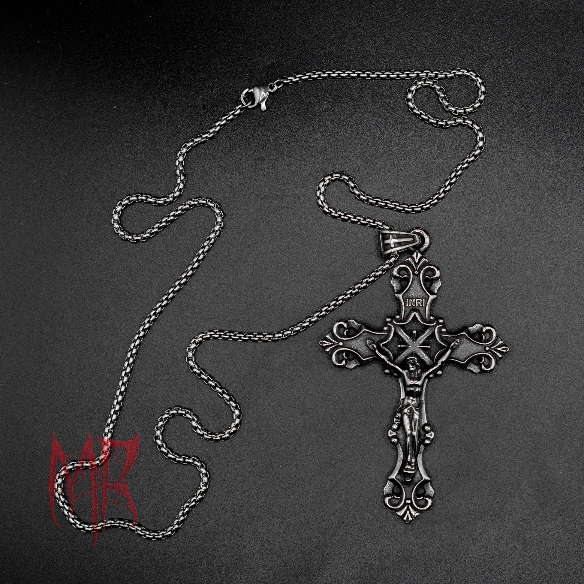 Feeling gothy? We can help with that, here's our Sanctus Cross Necklace. It's made of stainless steel. The front was given a distressed look, and the back has a beautiful, polished finish, it's the perfect accessory for those who need an elegant gothic piece. The stainless steel ball chain adds a touch of grit to complete the look. 🎚️