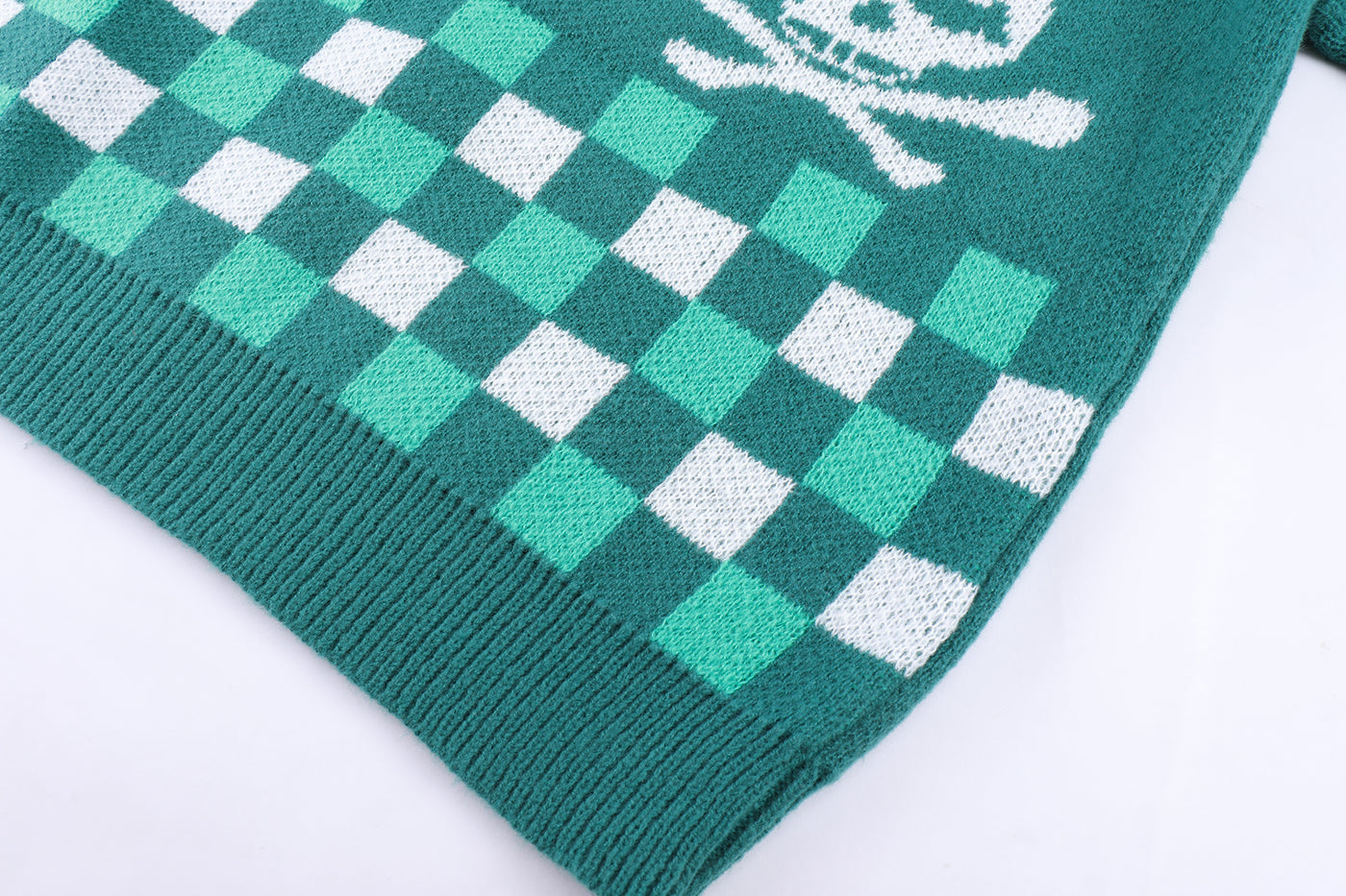 - Plaid front design with triple skull heads on the back