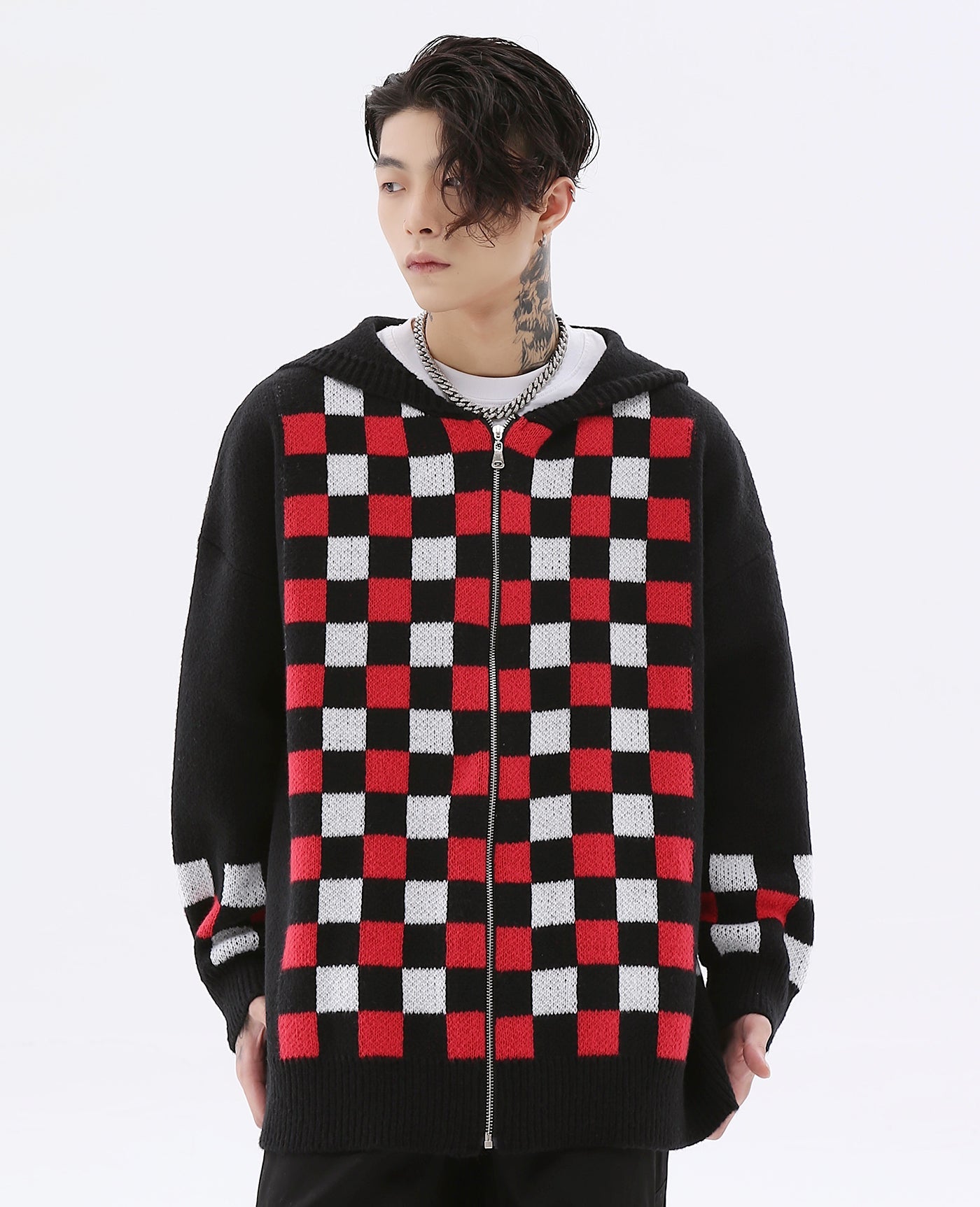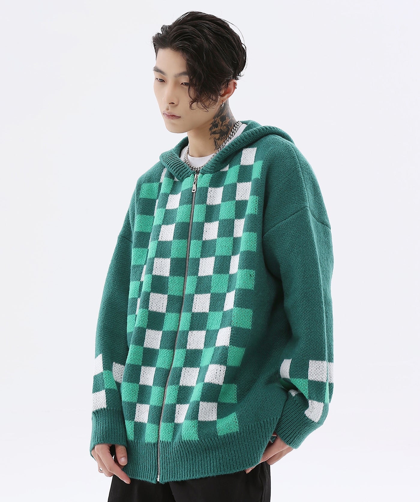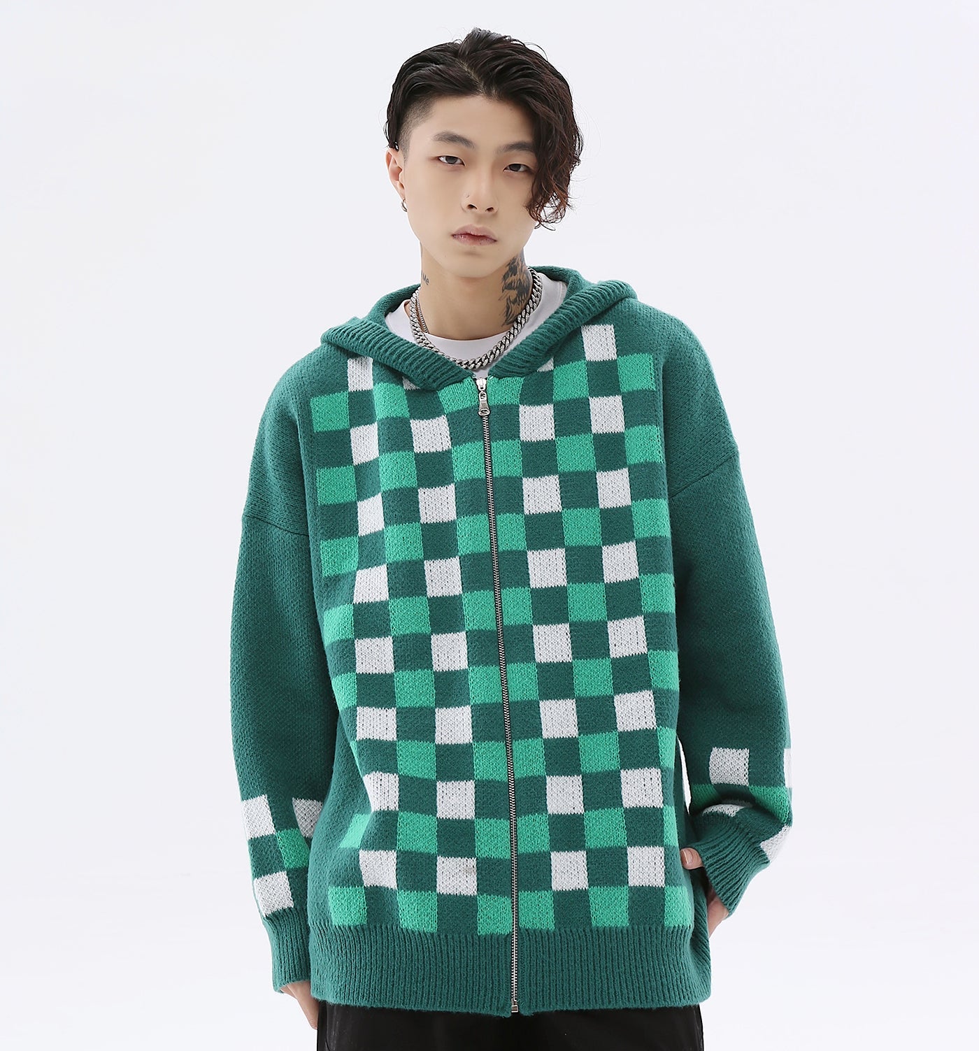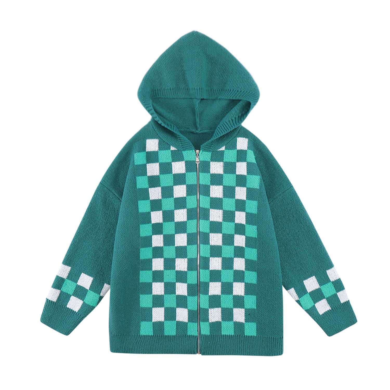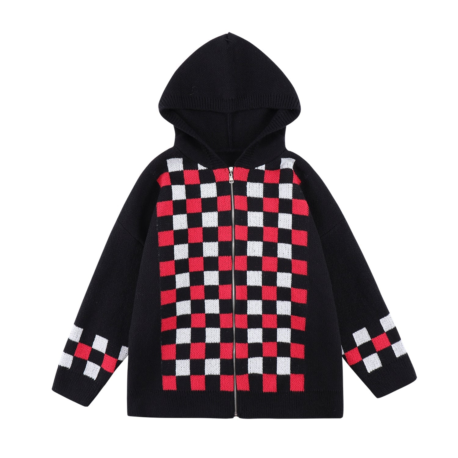 - The hoodie features completely knit material