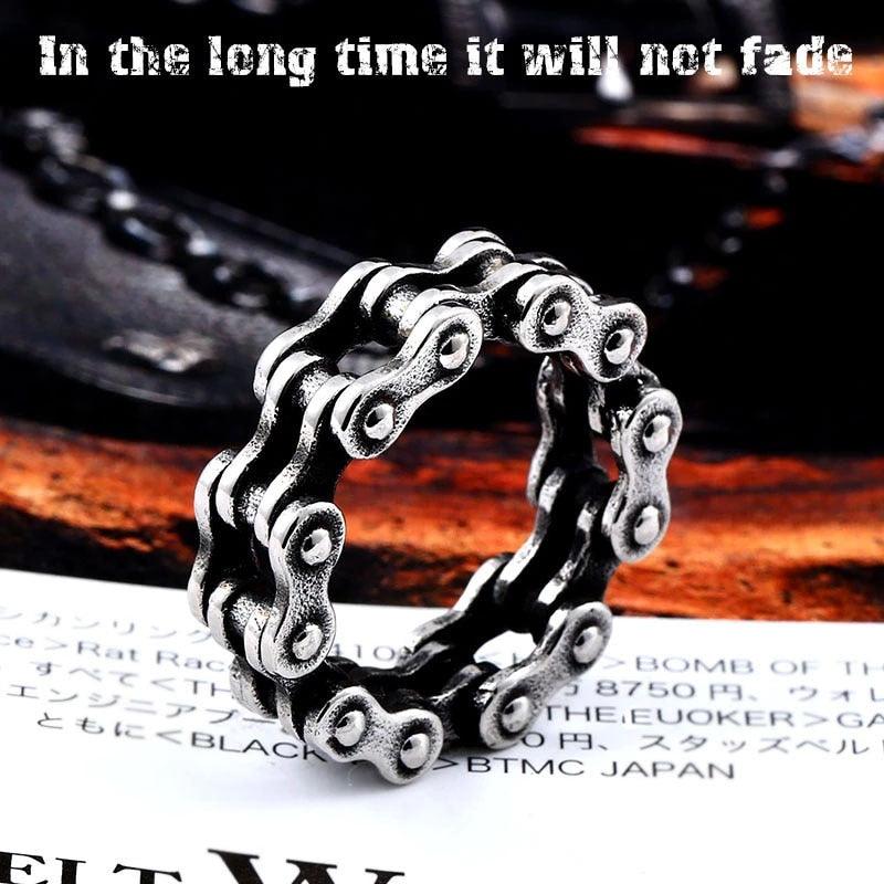Dive headfirst into the realm of darkness with the Wulfric Bike Chain Ring. Crafted from sleek Stainless Steel, this edgy accessory channels the raw energy of the streets. Its bike chain design evokes a sense of rebellion and audacity, making it a must-have for those who dare to defy the ordinary. With its striking presence and captivating allure, this ring is a powerful statement of individuality and nonconformity. Let your style roar with the Wulfric Bike Chain Ring, a symbol of untamed spirit and fearless expression.